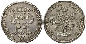 LIVORNO. Cosimo III de' Medici (1670-1723). Pezza della Rosa 1701. Ar (42.5mm, 25.88g). MIR 66/7. BB+