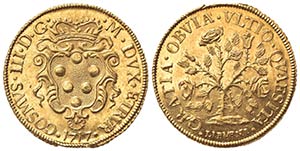 LIVORNO. Cosimo III de' Medici (1670-1723). Pezza della Rosa. Au (23.5mm, 6.93g). MIR 69. Appiccagnolo rimosso, SPL