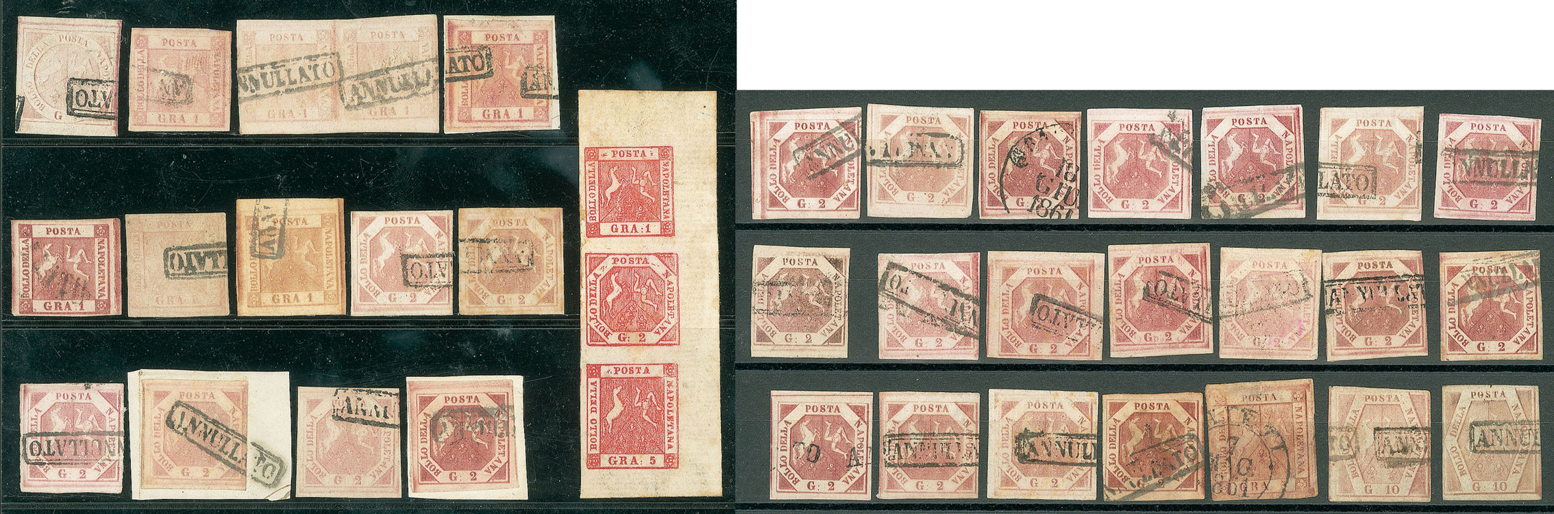 LOTTI VOLUMINOSI - NAPOLI - Prima Emissione - trentatre pezzi singoli + una coppia + ristampe in striscia di tre