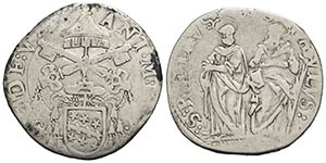 ROMA - Sede Vacante (1605) - Testone - 1605 - Stemma semiovale - R/ San Pietro seduto a d. - (AG g. 9,04) RRR CNI 2; Munt. 2 var. I - meglio di MB