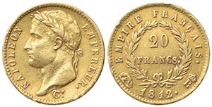 Roma. Napoleone I (1804-1815). 20 Franchi 1812. Au (21mm, 6.44g). Pag. 92. RR BB