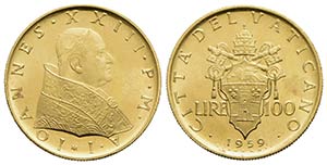 ROMA - Giovanni XXIII (1958-1963) - 100 Lire - 1959 - (AU g. 5,2) RR Pag. 866; Mont. 676 Fondi lucenti - FDC