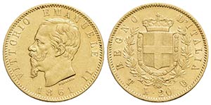 Vittorio Emanuele II Re d'Italia (1861-1878) - 20 Lire - 1861 T - (AU g. 6,43) R Pag. 455; Mont. 131 - SPL+