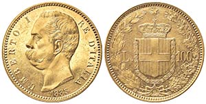 Lotto 264 | Umberto I (1878-1900). 100 Lire 1883. Au (35mm, 32.32g). Roma. Pagani 569; Gigante 3. qSPL