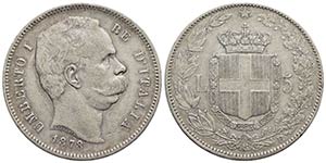 Lotto 269 | Umberto I (1878-1900) - 5 Lire - 1878 - AG RR Pag. 589; Mont. 32 Con cartellino del collezionista - BB+