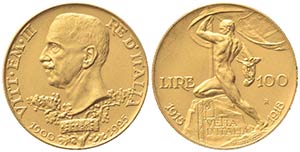Vittorio Emanuele III (1900-1943). 100 Lire 1925 Vetta d’Italia. Au (34.5mm, 32.31g). Roma. Pagani 645; Gigante 8. qSPL