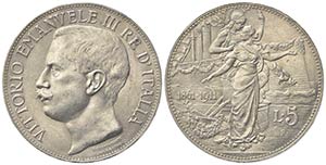 Vittorio Emanuele III (1900-1943). 5 Lire 1911. Ar (37mm, 25.01g). Roma. Pagani 707; Gigante 71. SPL