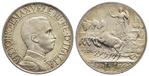 Vittorio Emanuele III (1900-1943) - Lira - 1908 Quadriga veloce - AG R Pag. 768; Mont. 194 Fondi brillanti - FDC