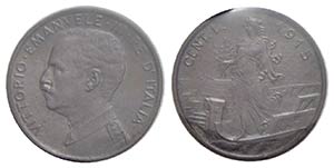 Vittorio Emanuele III (1900-1943) - Centesimo - 1915 Prora - CU RRRRR Pag. manca; Mont. 429a 4 mani Periziata Rocco di Torrepadula - qFDC