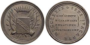 Lotto 348 | PAPALI - Sede Vacante (1829) - Medaglia - 1829 Opus: Gennari Ø: 33 mm. - (AE g. 20,09) R Boccia 90; Bart. p. 248