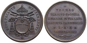 PAPALI - Sede Vacante (1846) - Medaglia - 1846 Opus: Pasinati Ø: 33 mm. - (AE g. 20,23) R Boccia 100; Bart. p. 268 Cardinale Camerlengo Tommaso Riario Sforza - FDC