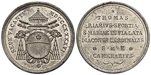 PAPALI - Sede Vacante (1846) - Medaglia - 1846 Opus: Pasinati Ø: 33 mm. - (MB g. 14,37) Boccia 100; Bart. p. 268 Cardinale Camerlengo Tommaso Riario Sforza - qFDC