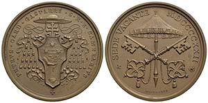 PAPALI - Sede Vacante (1922) - Medaglia - 1922 Opus: Mistruzzi Ø: 39 mm. - (AE g. 22,88) R Boccia 114; Bart. p. 348 Camerlengo Cardinale Pietro Gasparri - FDC