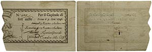 Lotto 404 | SARDO-PIEMONTESE - Regie Finanze - 1.000 Lire - 01/01/1746 - RRRRR Gav. 46 Annullato con barra verticale