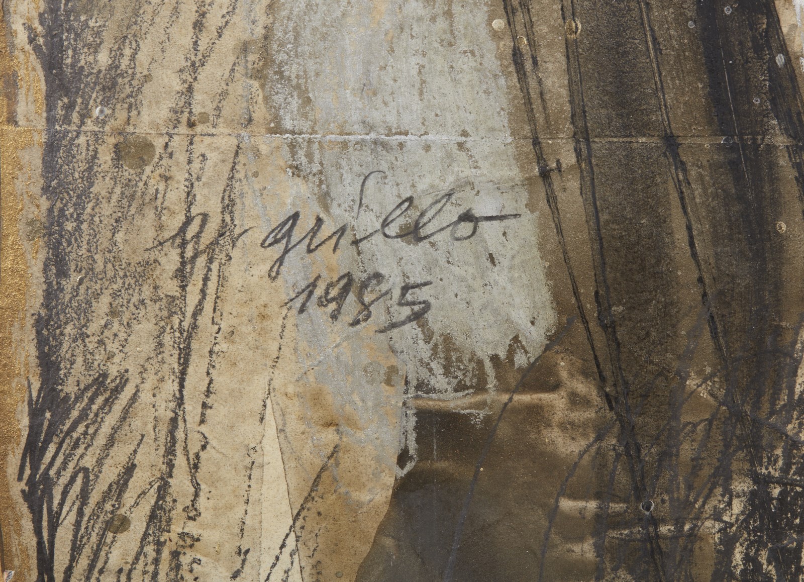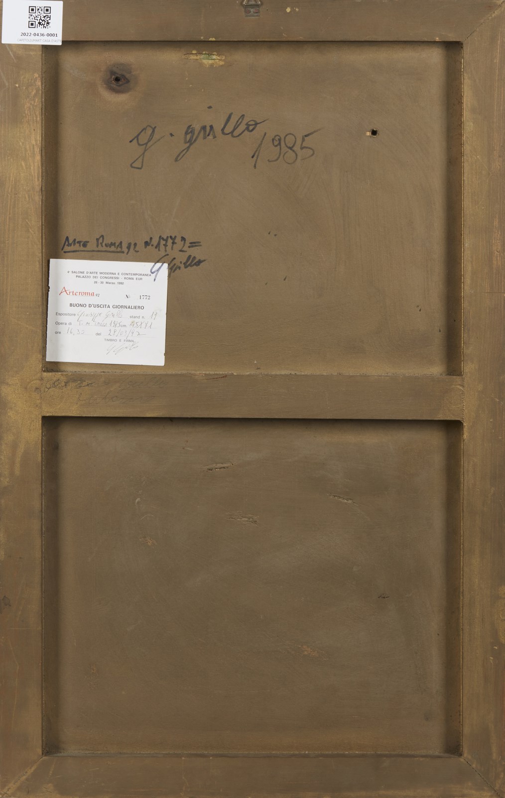 GRILLO GAETANO (n. 1952) I fiori del pianto. . 1985. Tecnica mista su tavola. Cm 45,00 x 71,00. Firma, anno e titolo a sinistra. Al retro firma, anno e cartiglio descrittivo Arteroma: Salone d'Arte Moderna e Contemporanea.