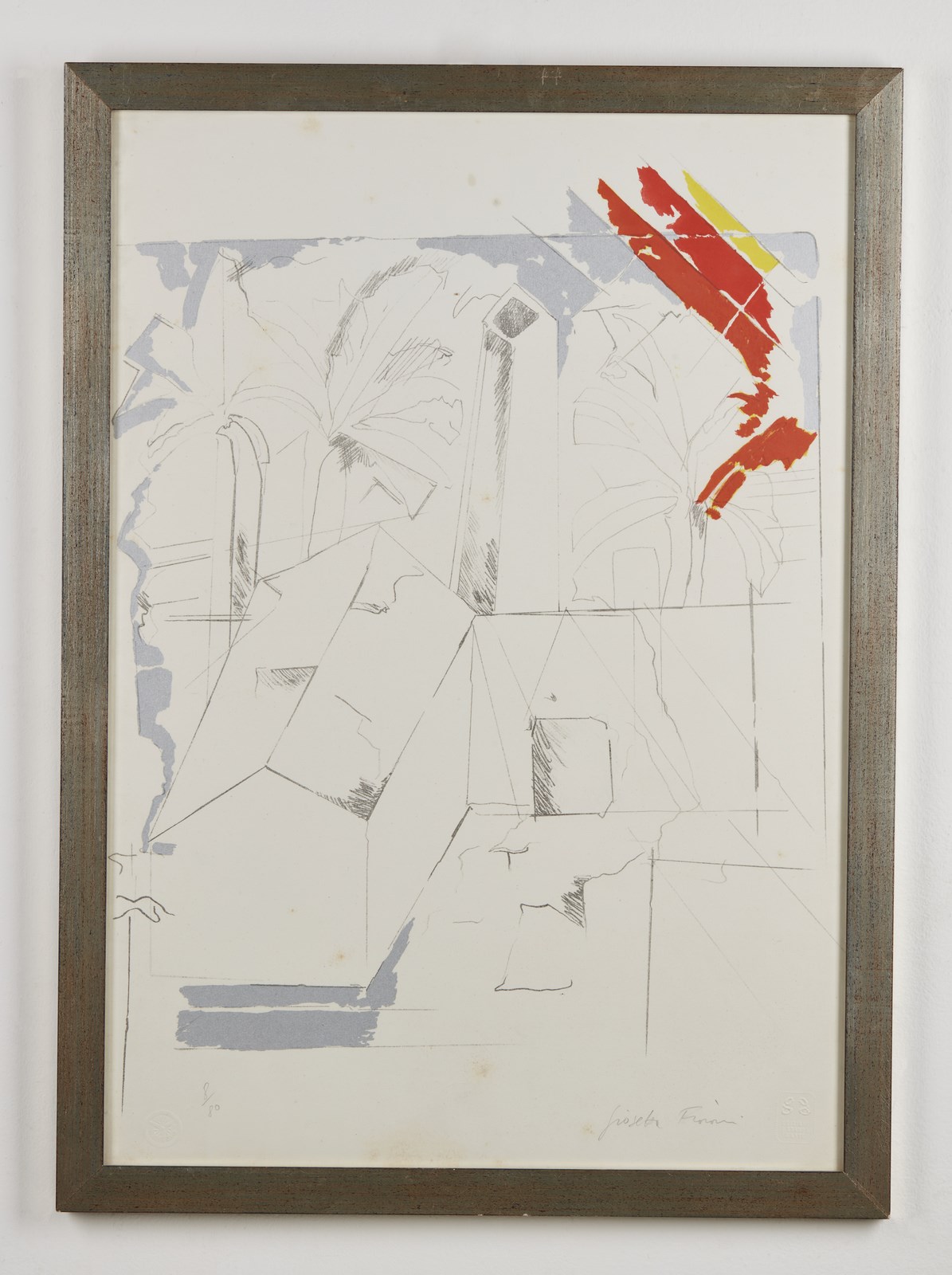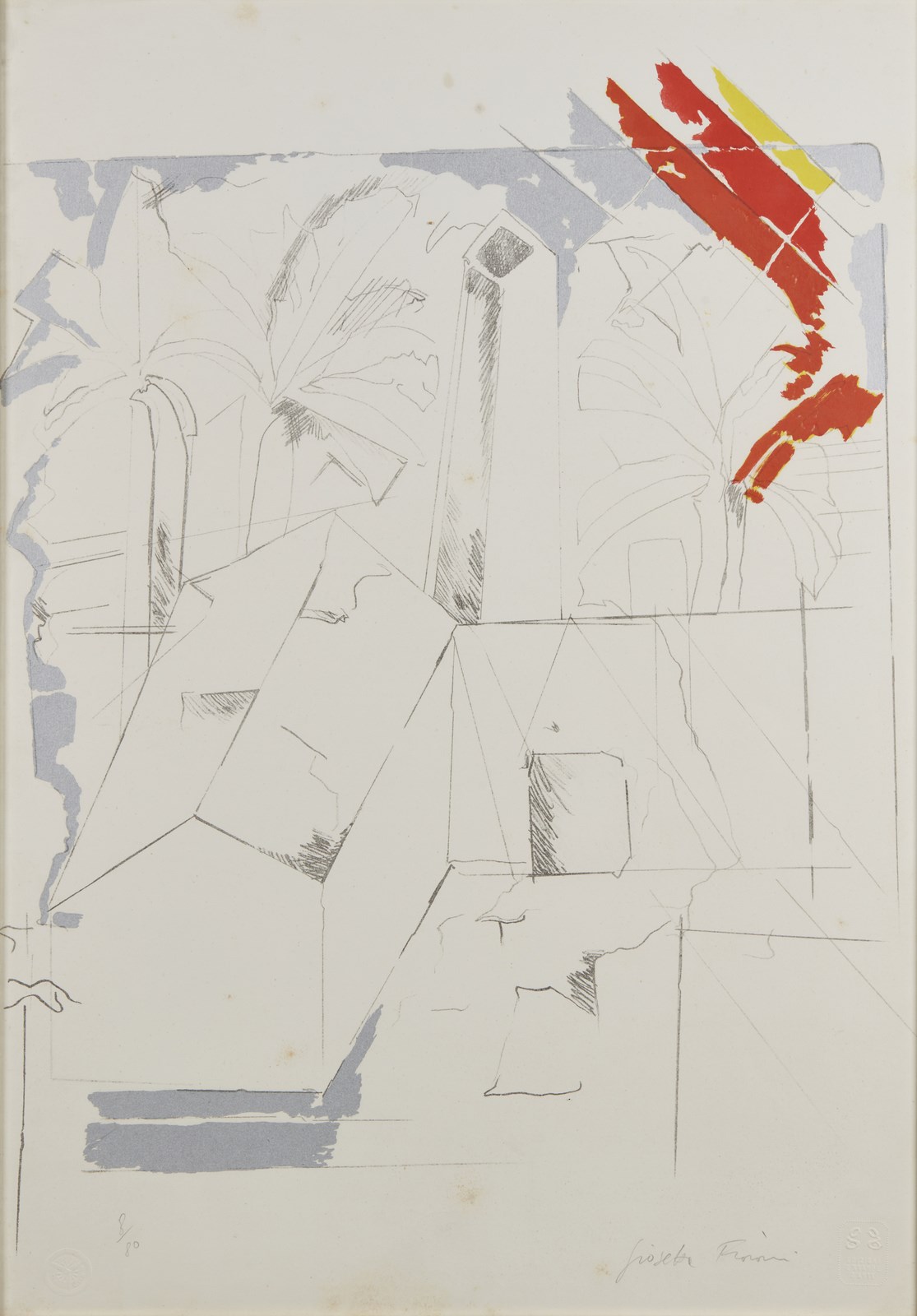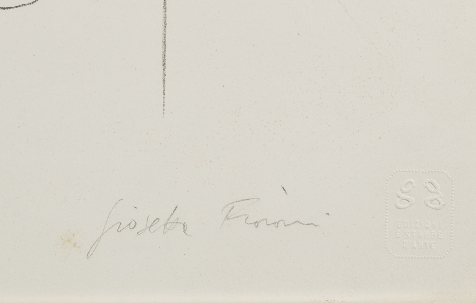 FIORONI GIOSETTA (n. 1932) Paesaggio Picasso. Serigrafia. Cm 49,00 x 69,50. 8/80. Tiratura in basso a sinistra, firma a matita in basso a destra. Timbro a secco in basso a sinistra IlTorchio Romano, in basso a destra GG Edizioni e Stampe d'Arte. Edizione totale: 80 esemplari numerati da 1/80 a 80/80; 20 p.d.a numerate da I/XX a XX/XX + prove di stampa. Lievi difetti. . Cornice presente
