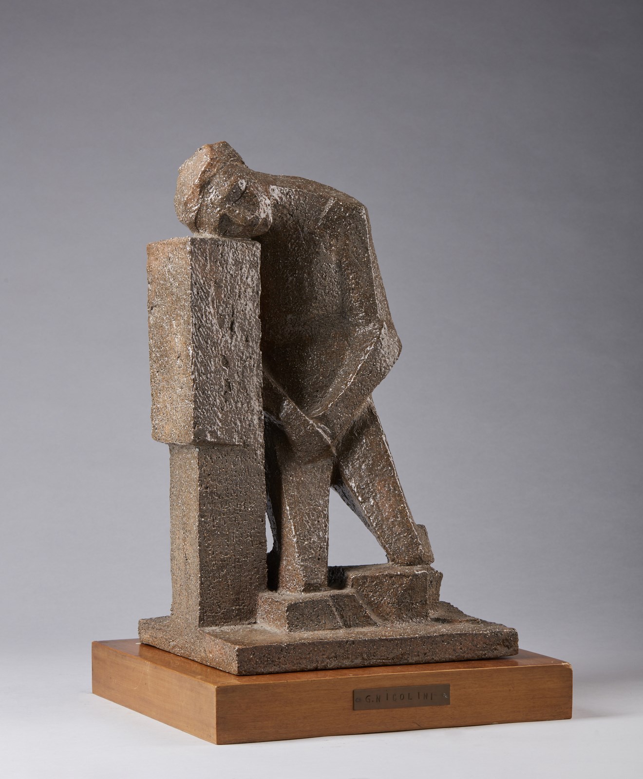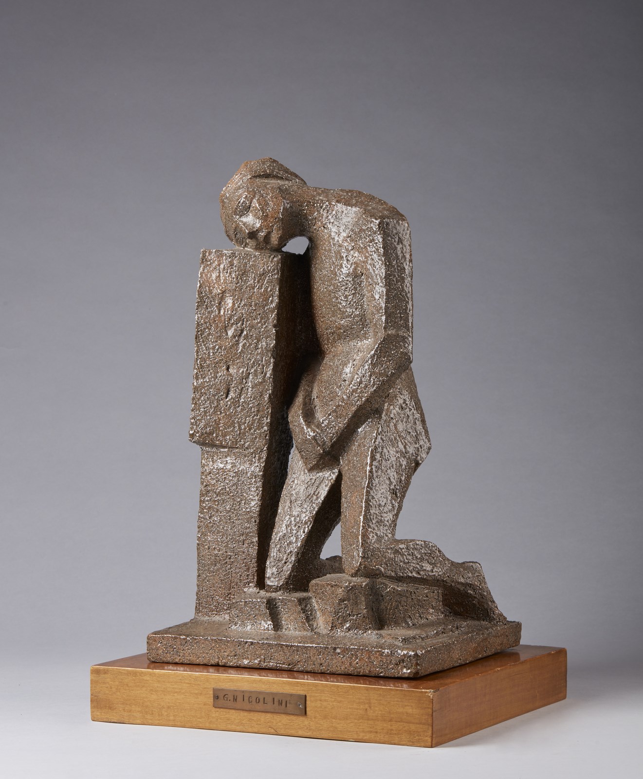 NICOLINI GIOVANNI (1872 - 1956) Senza titolo. pietra. Cm 31,00 x 47,00 x 31,00. Al retro firma incisa in basso a destra. Misure senza la base: 42x25x22,5cm. Lievi difetti.