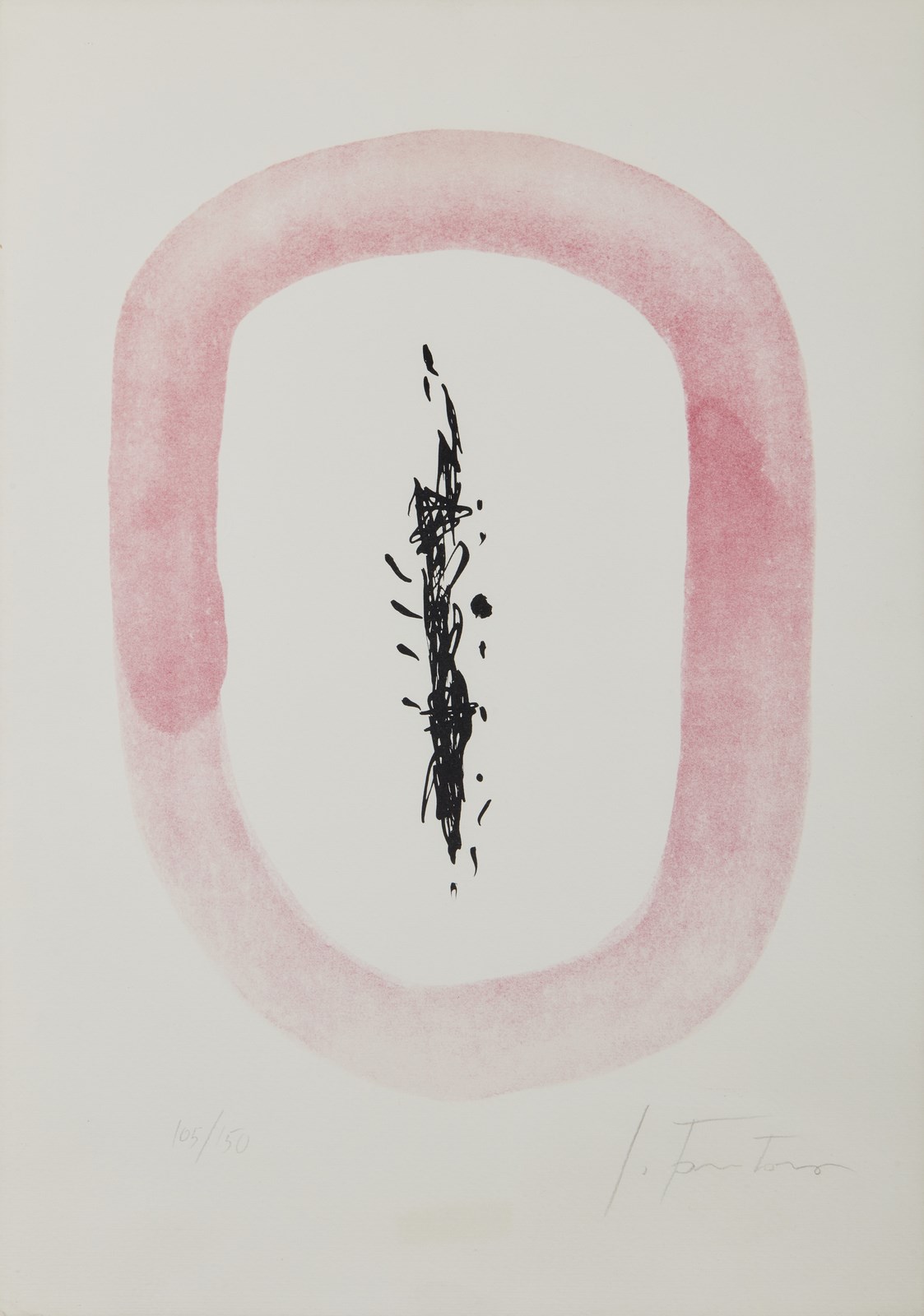 FONTANA LUCIO (1899 - 1960) Senza titolo. 1963. Fotolitografia. Cm 34,20 x 48,70. 105/150. Tiratura e firma in basso a matita. Pubblicazione: Harry Ruhé e Camillo Rigo, Lucio Fontana. Incisioni, grafica, multipli, pubblicazioni..., Trento 2007, tav. L-27, p. 111.Edizione totale: 150 +XX. Dal libro "Six Contes de la Fontaine" contenete sei illustrazioni di Fontana. Edizione de Il Cinquale, Milano, 1963. Lievi difetti. Cornice presente
