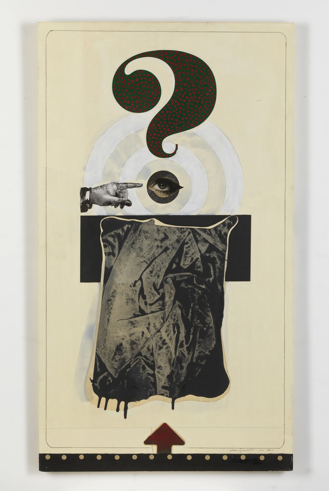 GIRARDELLO SILVANO (1928 - 2016) Altare per un laico. 1968. Tecnica mista e collage su tavola. Cm 55,00 x 96,00. Firma e anno in basso a destra. Al retro titolo, firma e anno.