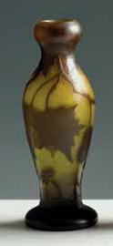 Legras. Vaso in vetro a cammeo decorato a foglie e bacche su fondo giallo, 1900 circa. Firma a cammeo: Legras altezza cm 23