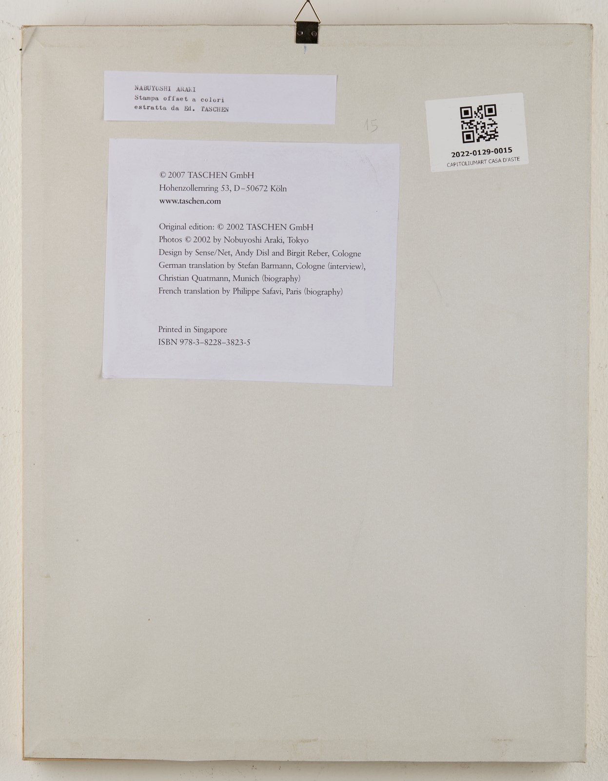 ARAKI NOBUYOSHI (n. 1940) Senza titolo. 2007. Fotolitografia. Cm 20,00 x 29,00. Lotto proveniente dal volume Un Grande Araki, Ed. Taschen, 2007 con tiratura limitata in 2500 copie. Il libro racchiude più di 1000 immagini. Cornice presente