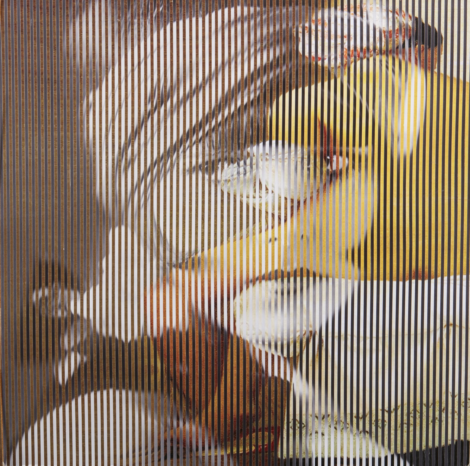 MALIPIERO (n. 1934) Osmosi (Louise Brooks - Ingres). 2013. Tecnica mista . Cm 38,00 x 38,00. Al retro titolo, firma e anno. Lievi difetti.