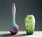 Richard. Vaso in vetro a cammeo con lungo collo e decori viola su fondo azzurro, 1900 circa. Firma a cammeo: Richard D’Argental. Vaso in vetro a cammeo ovoidale decorato con papaveri verdi, 1900 circa. Firma a cammeo: D’Argental altezze cm 22 e cm 14