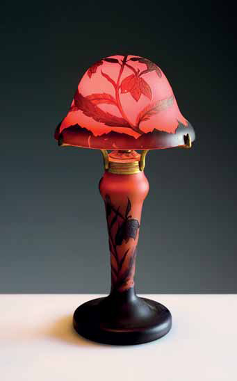 Lotto 126 | Richard. Piccola lampada da tavolo in vetro a cammeo con decori a foglie su...