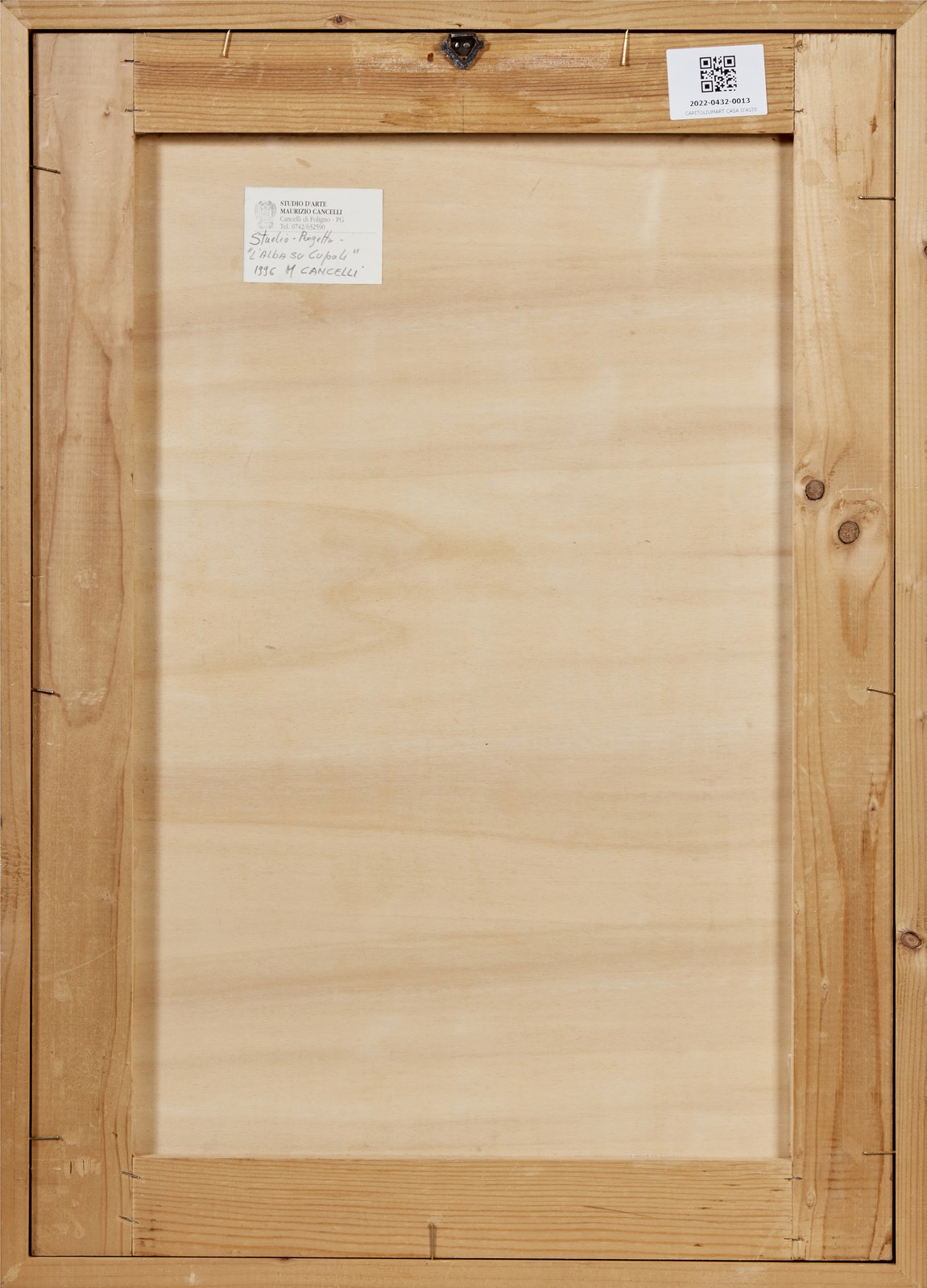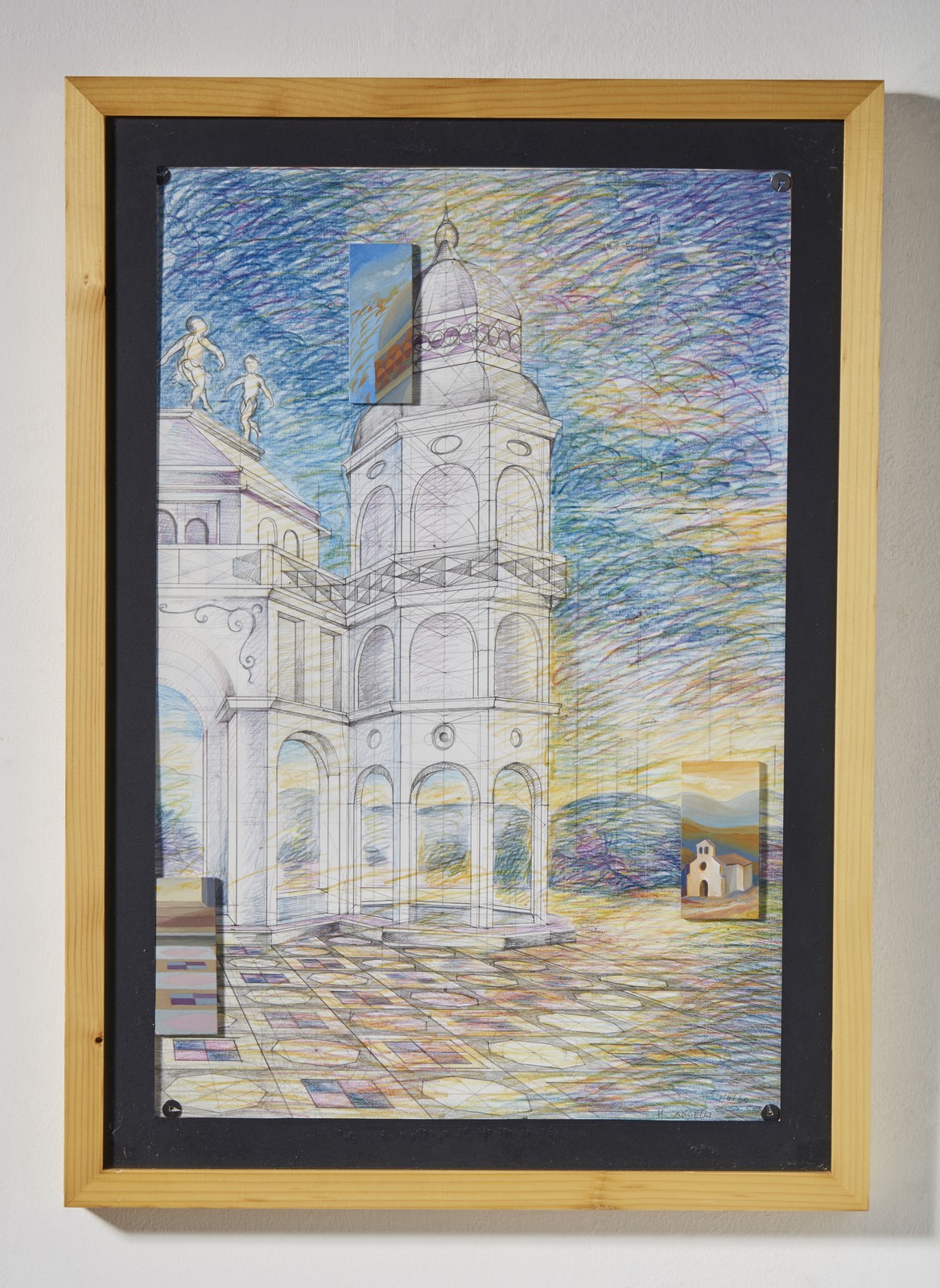 CANCELLI MAURIZIO L'alba su Cupoli. . 1996. mista su carta. Cm 40,00 x 60,00. Firma e titolo in basso a destra. Al retro cartiglio descrittivo Studio d'arte Maurizio Cancelli, Foligno. Lievi difetti. Cornice presente