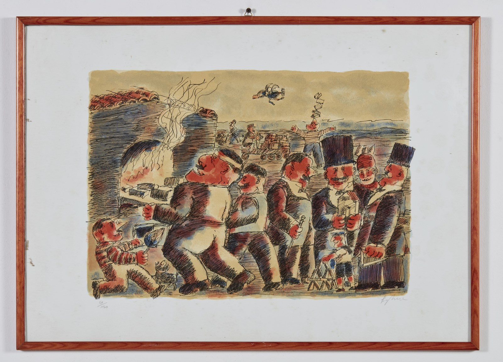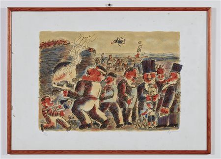 BORGHESE FRANZ (1941 - 2005) Fabbrica di mattoni. Serigrafia. Cm 70,00 x 50,00. 61/150. Tiratura e firma in basso a matita. Timbro a secco Franz Borghese in basso a destra. Difetti. Cornice presente