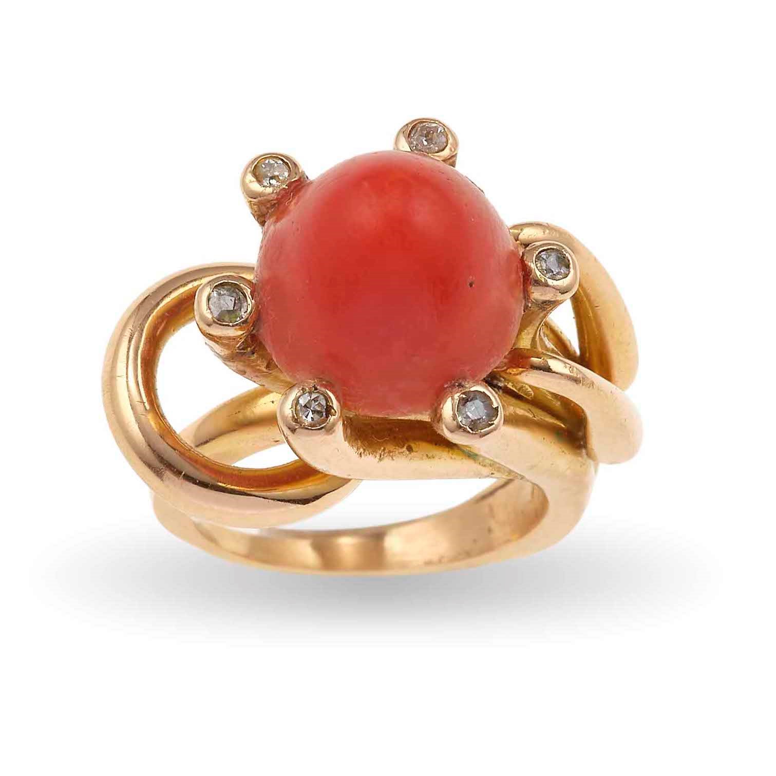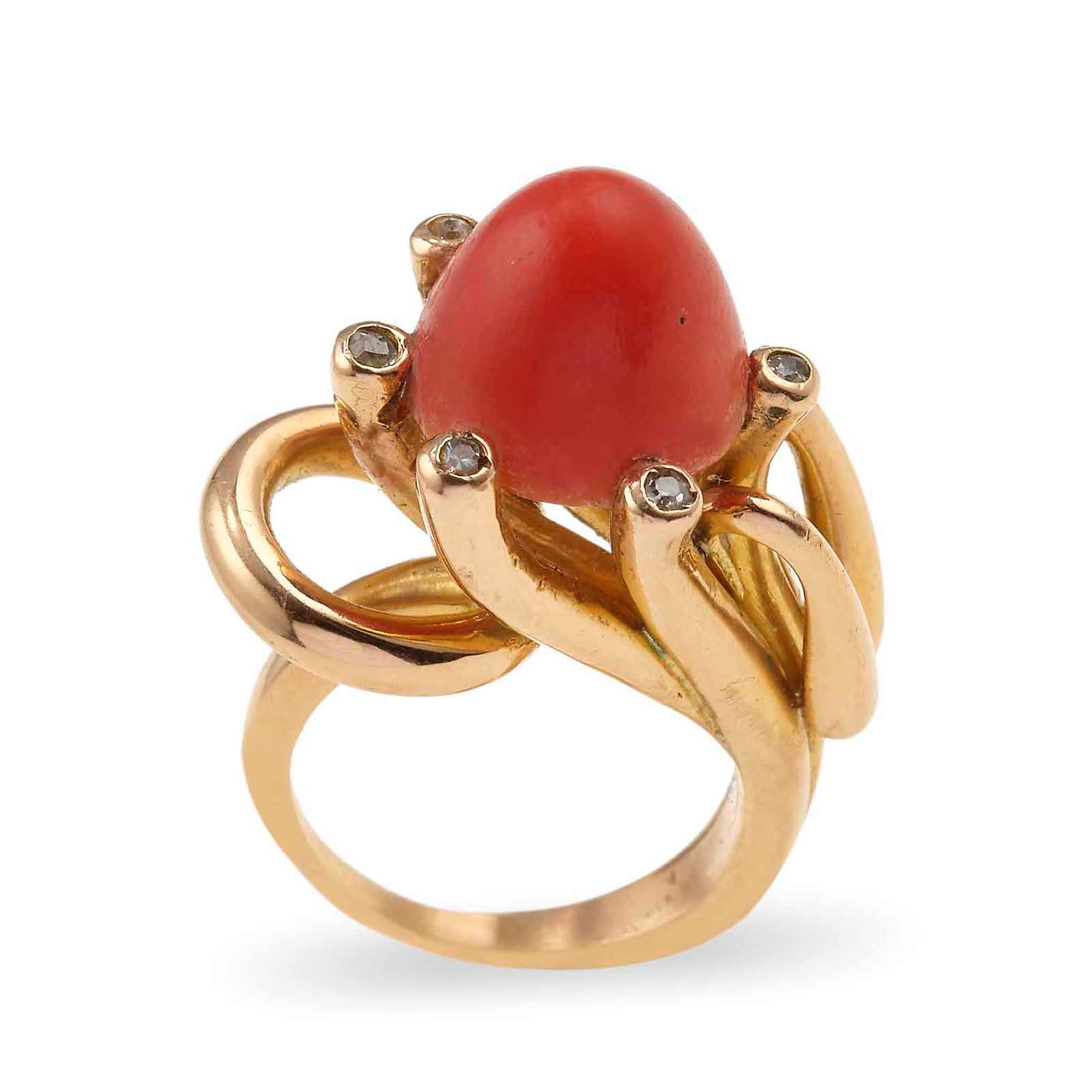 Lotto 201 | Anello con corallo e piccoli diamanti