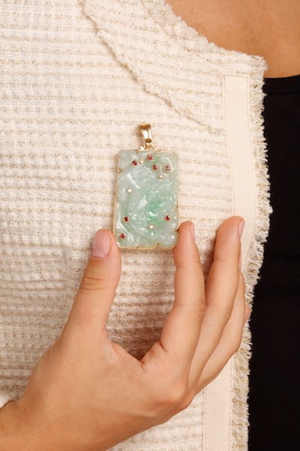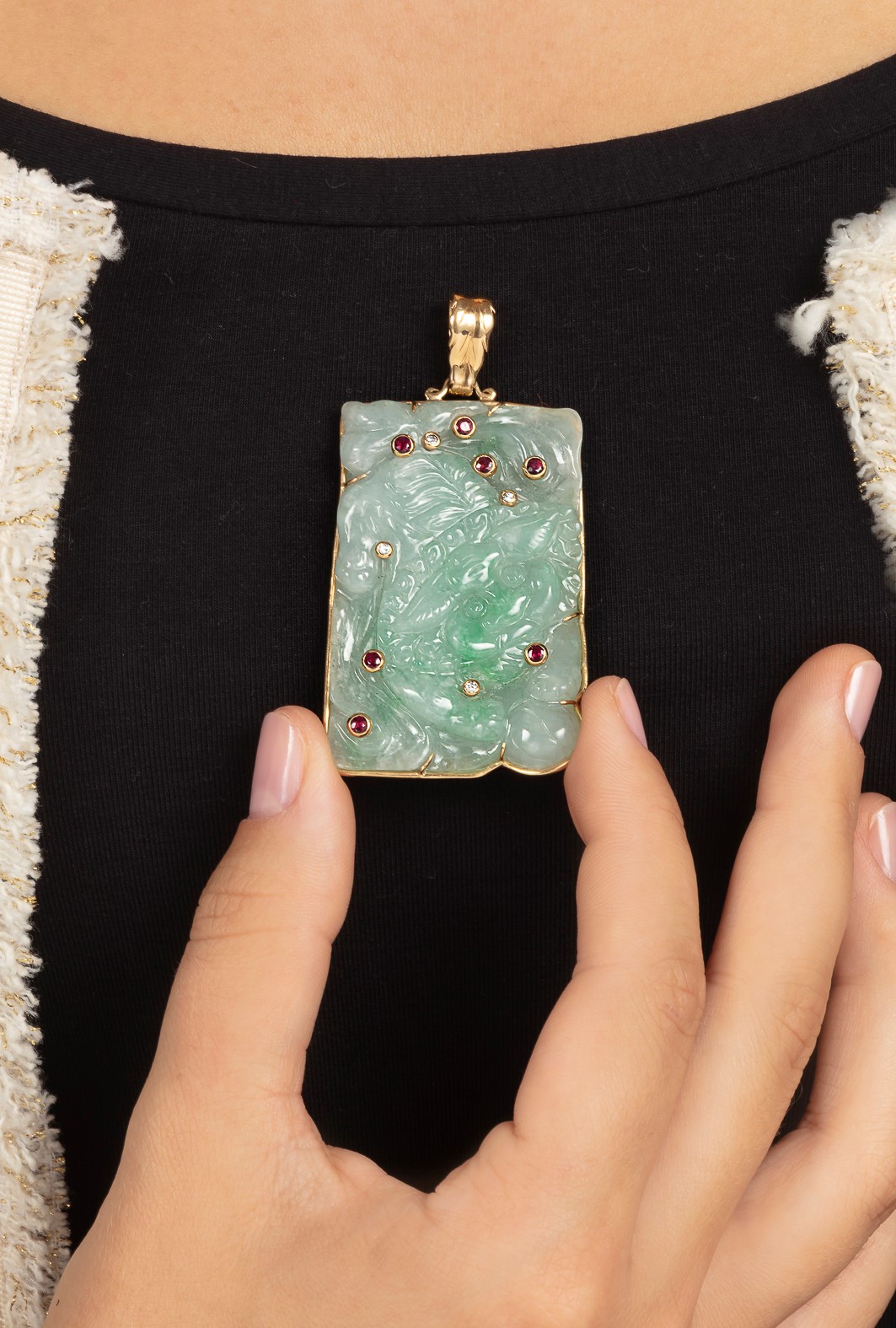 Lotto 219 | Pendente in giada, rubini e diamanti