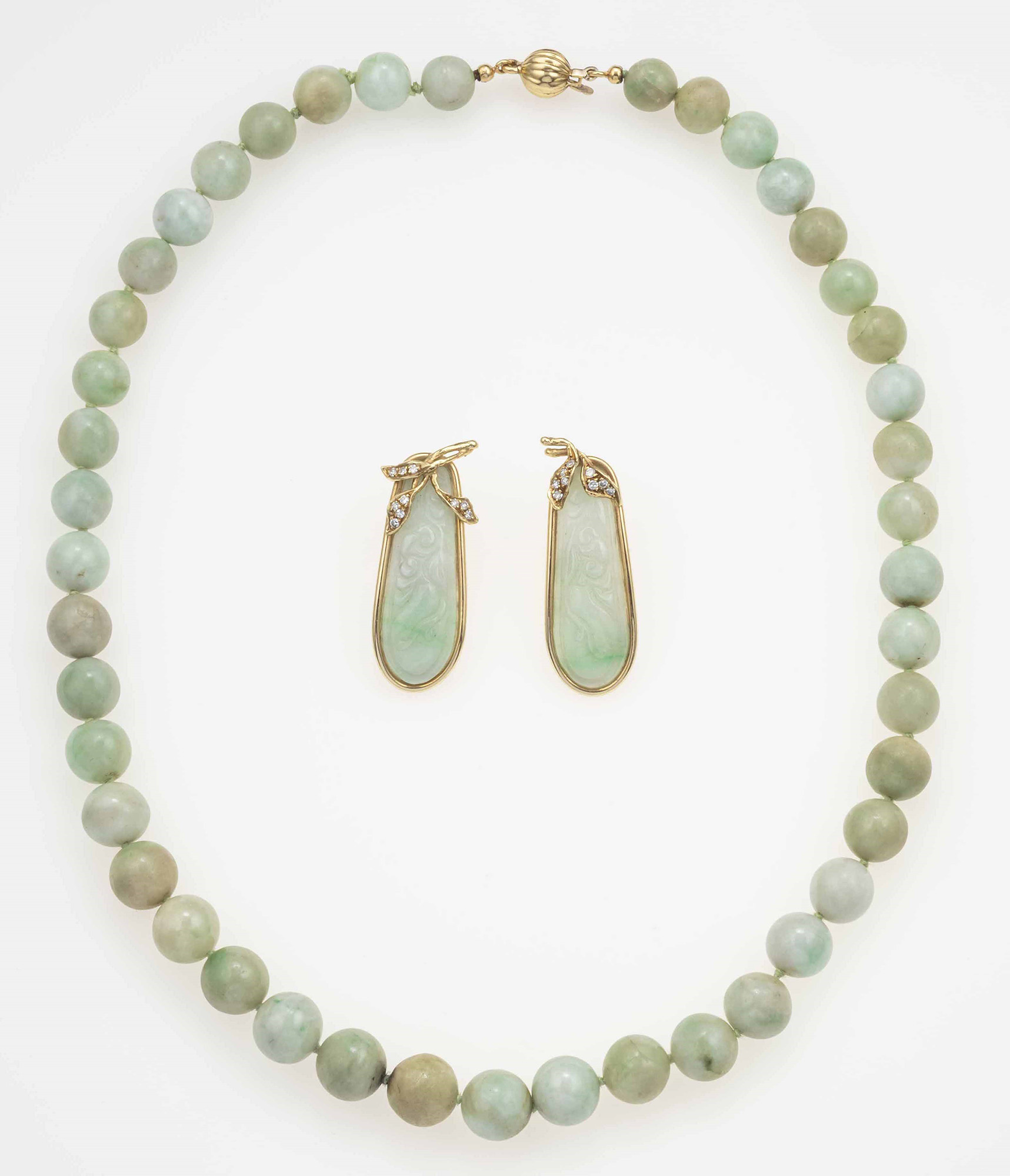 Lotto 221 | Demi-parure composta da collana ed orecchini in giada
