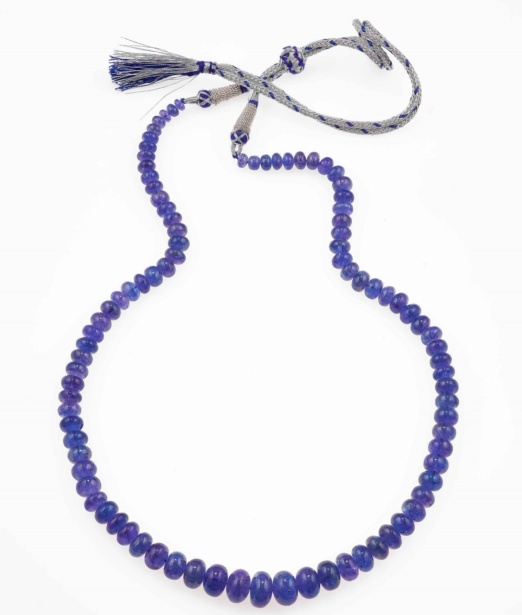 Collana con tanzaniti per ct 428.00, gr 90.3, diametro da 6 a 13,2 mm