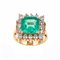 Anello con smeraldo Colombia di ct 3.70 circa e diamanti taglio brillante a contorno per ct 1.20 circa, montatura in oro giallo 750/1000, gr 8.1, misura italiana 9, punzone CEI
