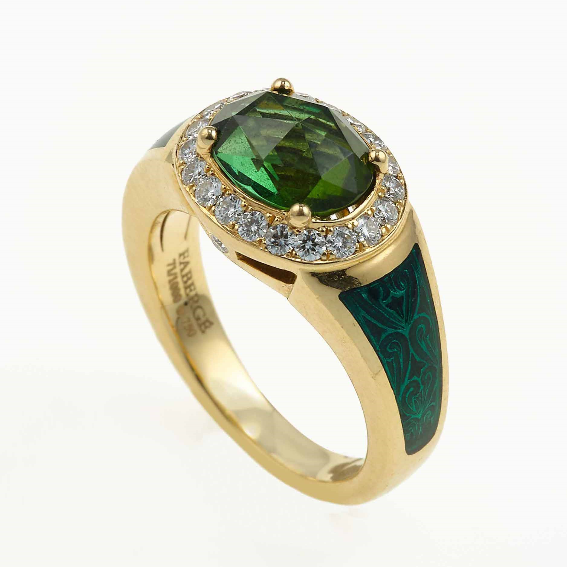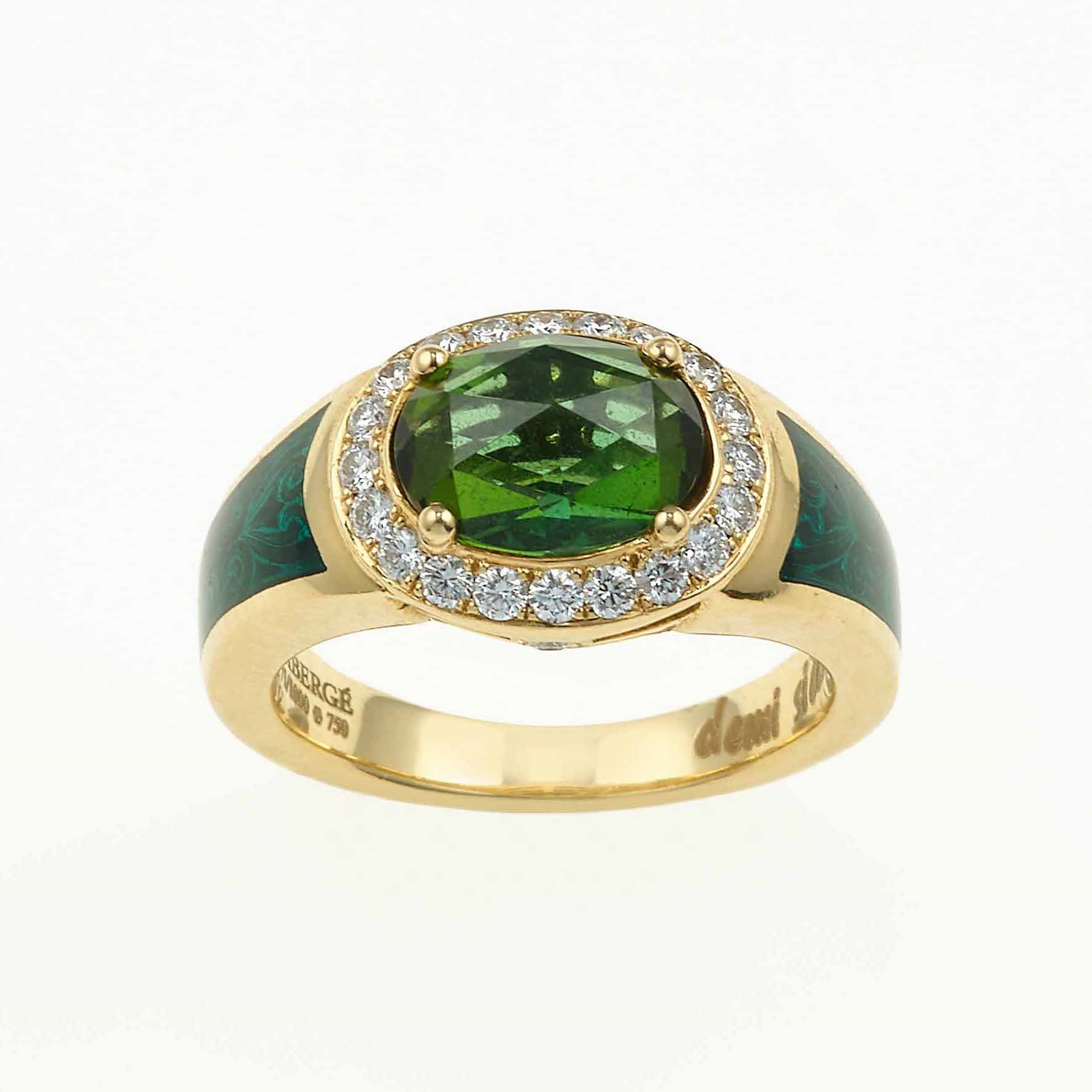 Fabergè. Anello con peridoto, diamanti e smalto verde