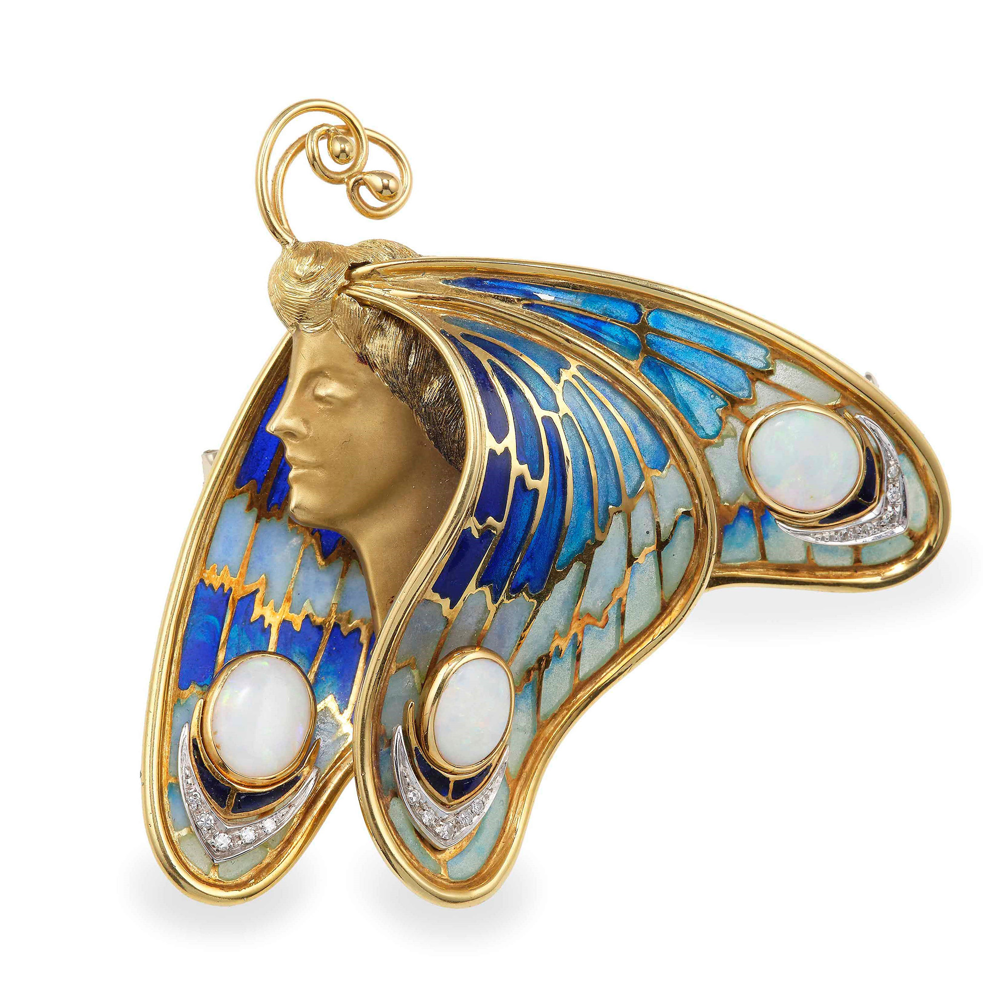 Spilla "farfalla" con smalti plique-à-jour, opali e piccoli diamanti