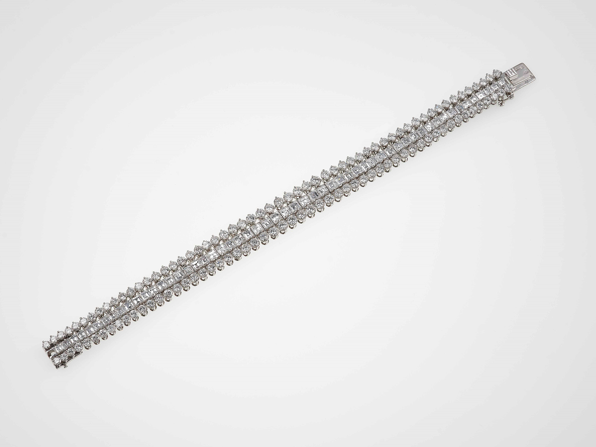 Bracciale con diamanti taglio brillante e taglio square per ct 21.30 circa
