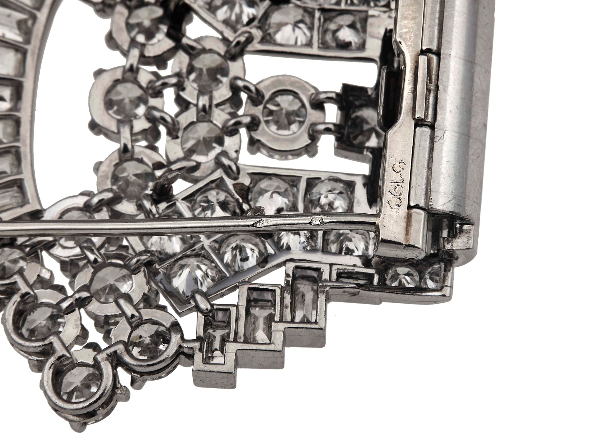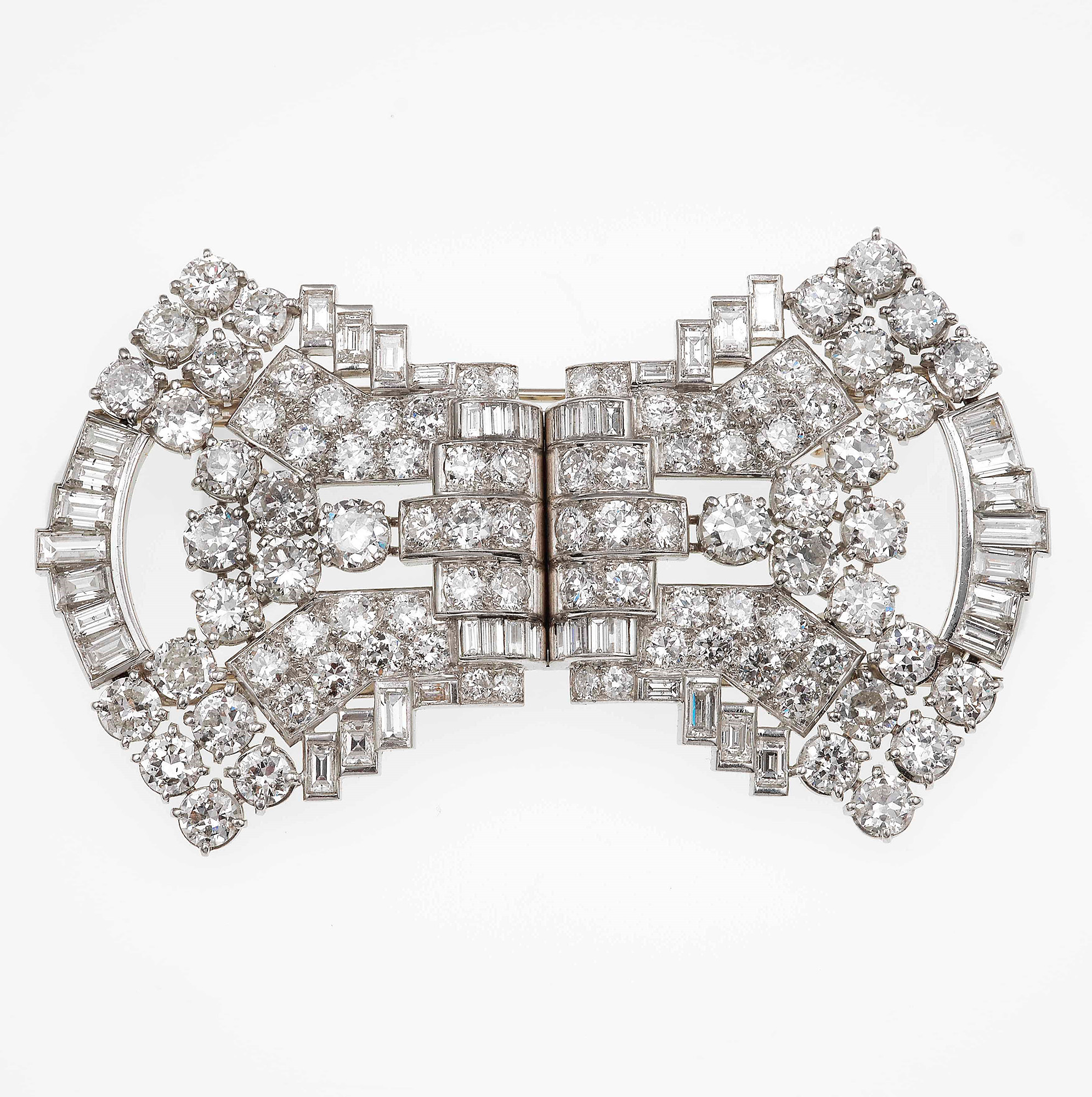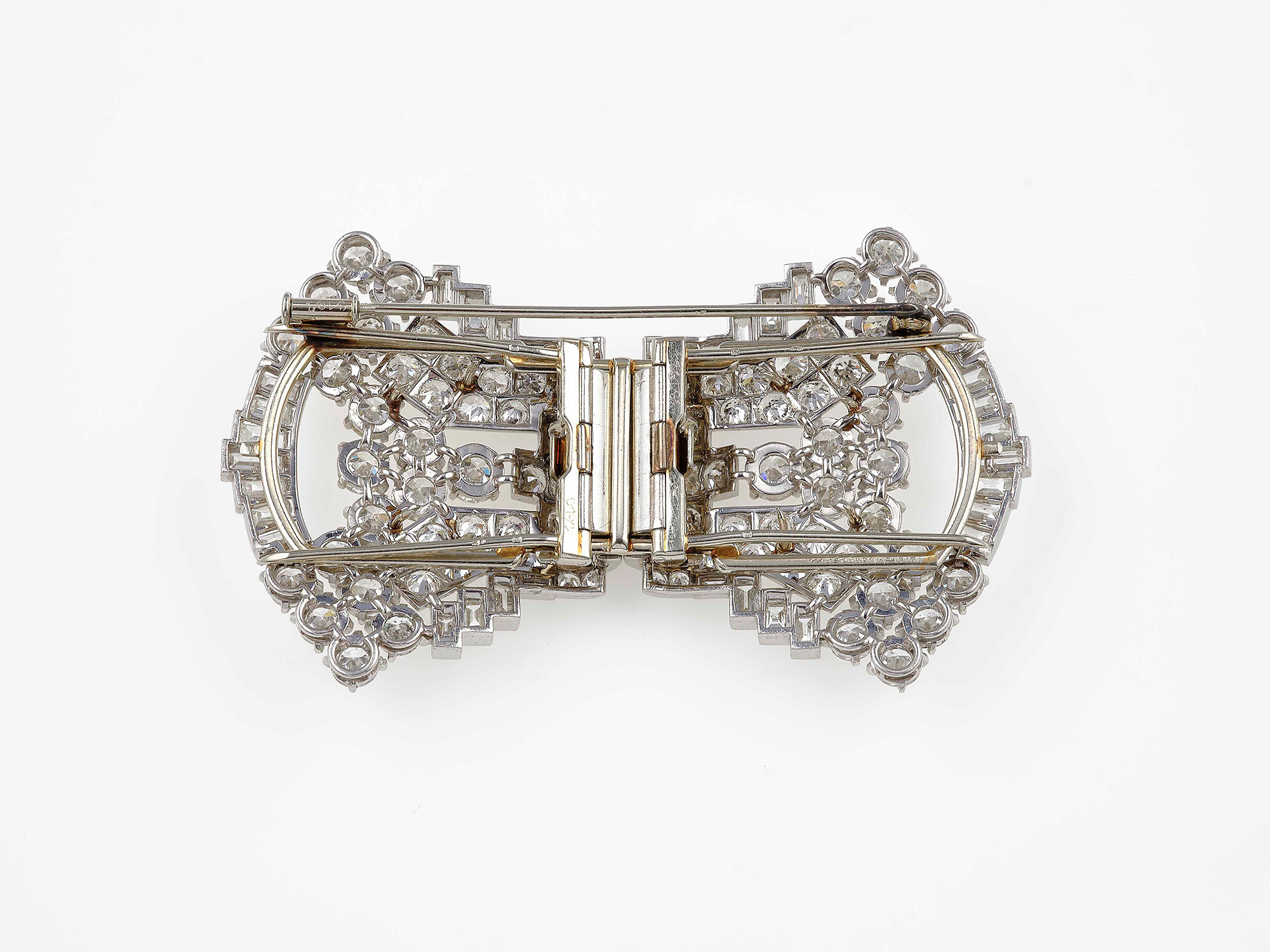 Maubussin-Paris. Spilla douette con diamanti, montatura in platino. Firmata e numerata 8192, gr. 54,5