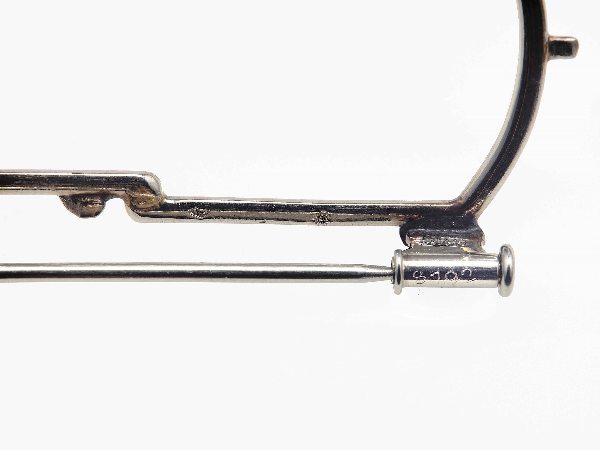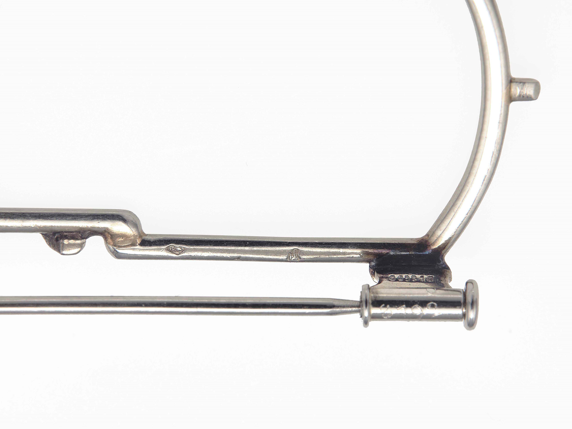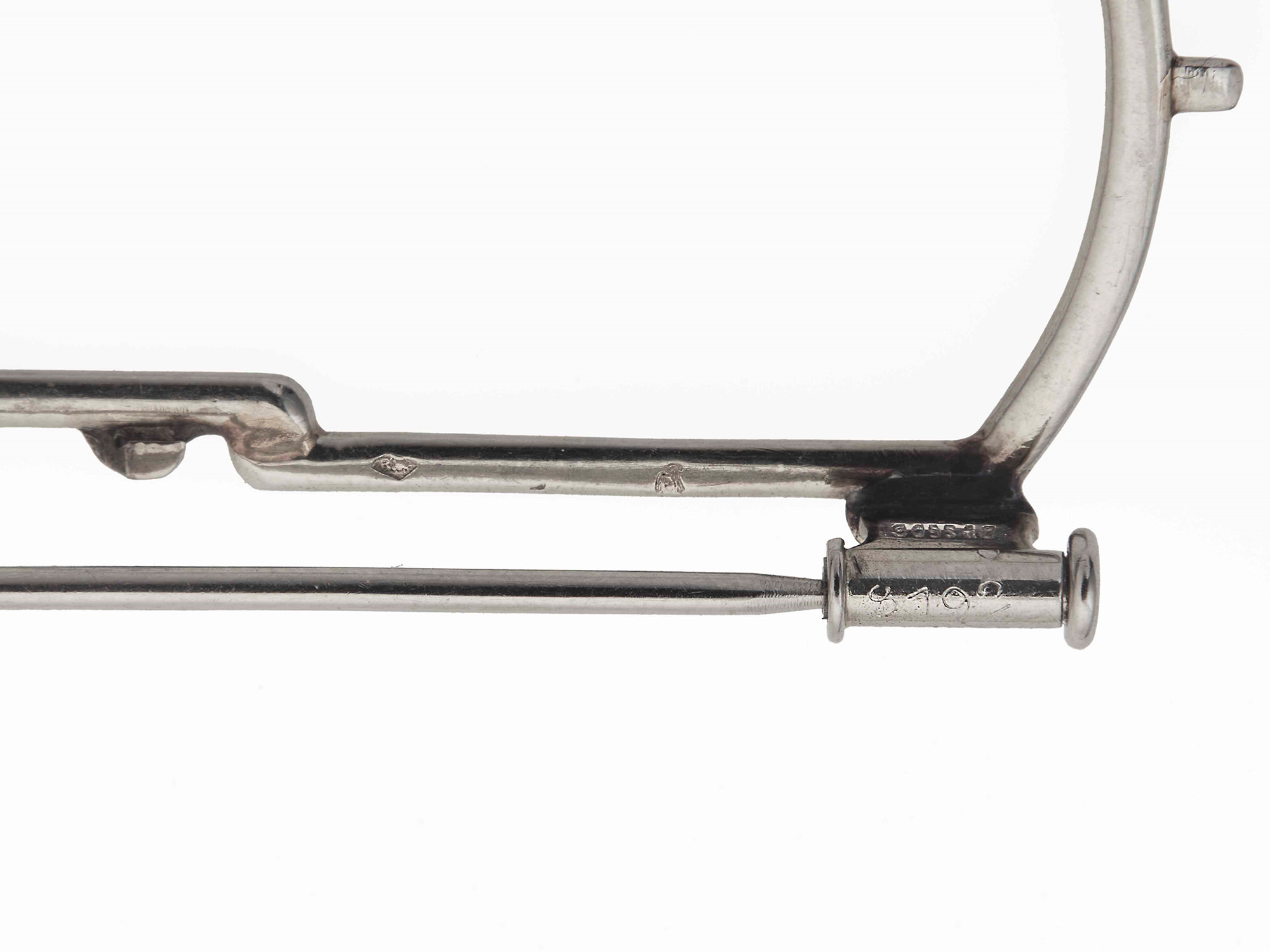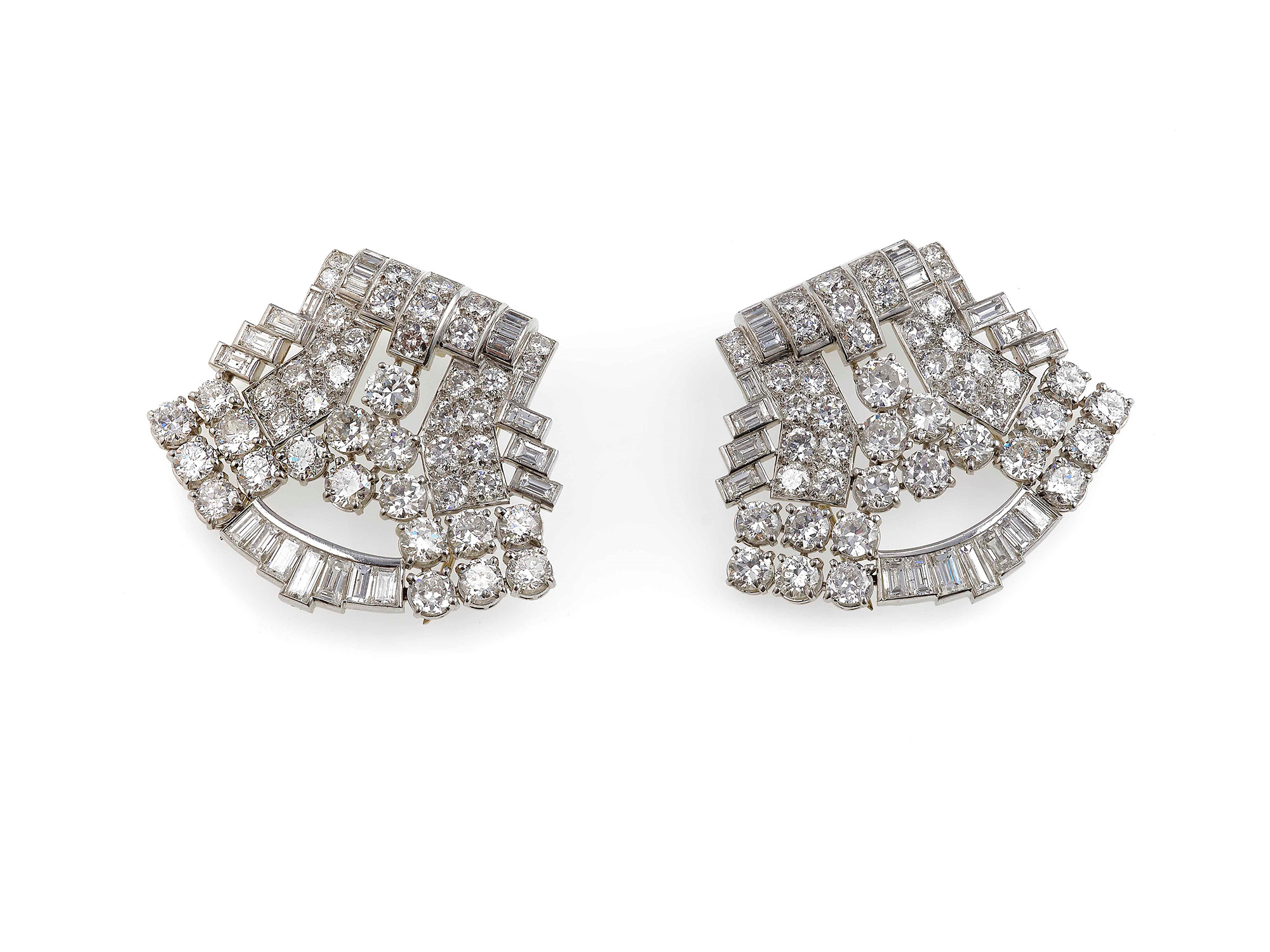 Maubussin-Paris. Spilla douette con diamanti, montatura in platino. Firmata e numerata 8192, gr. 54,5