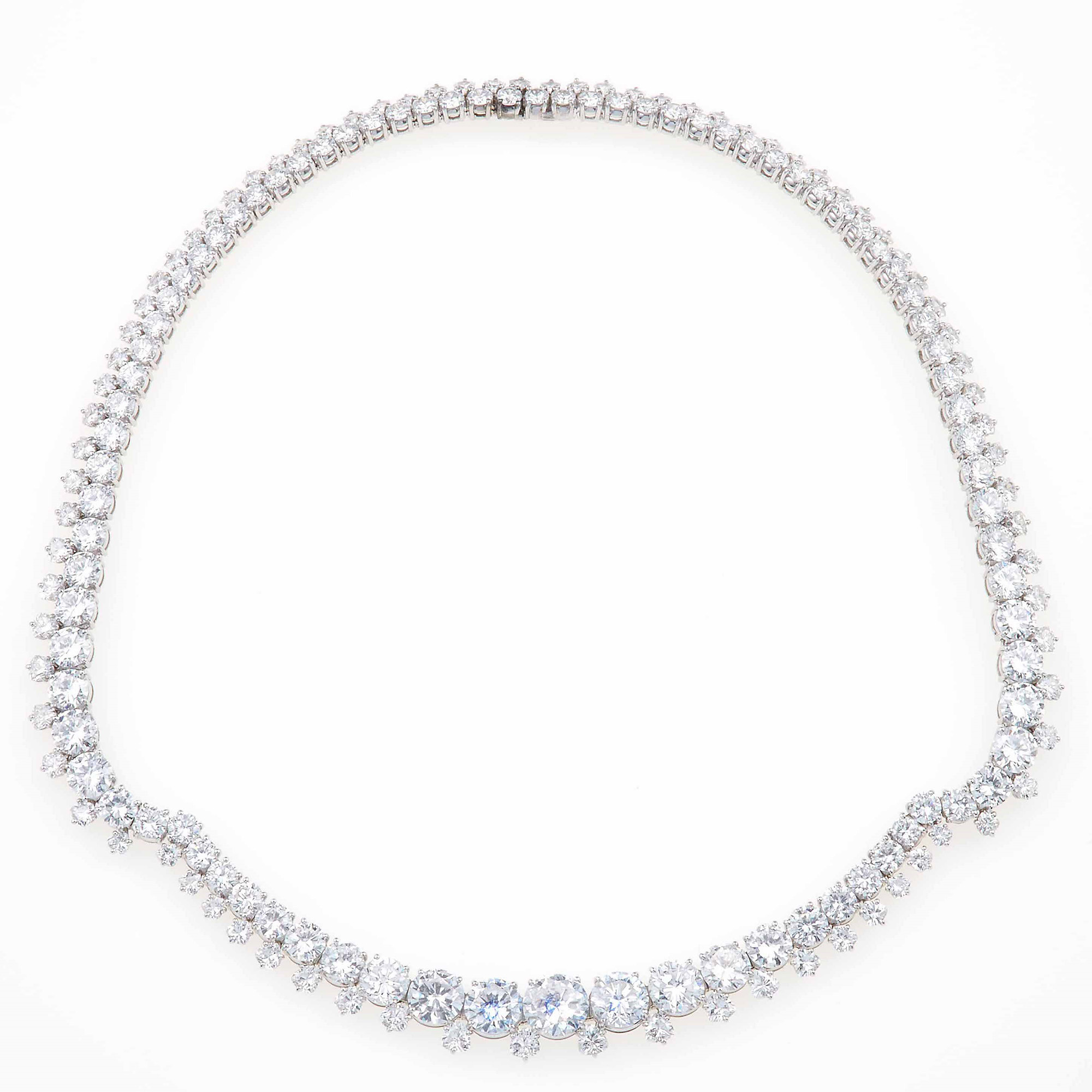 Rivière composta da 168 diamanti taglio brillante e diamanti taglio a scudo, per ct 46.00 circa