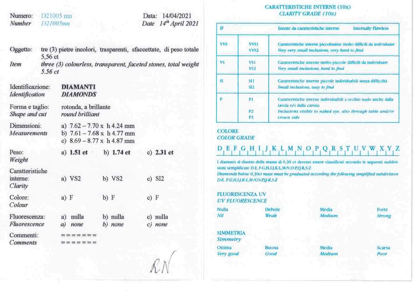 Rivière composta da 168 diamanti taglio brillante e diamanti taglio a scudo, per ct 46.00 circa, montatura in platino con fermezza in oro bianco 750/1000., Diamond Report R.A.G. Torino n. D21005mn