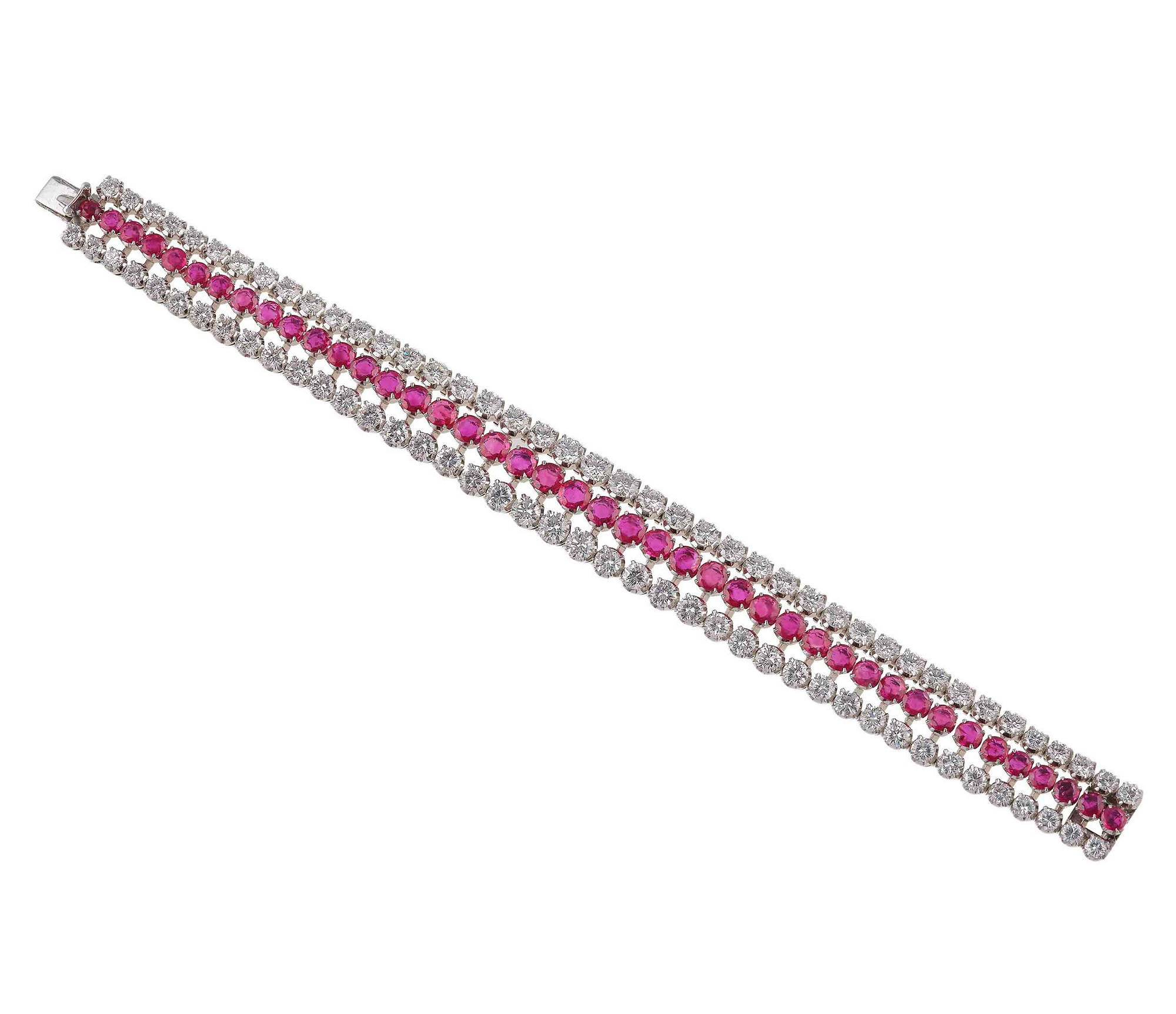 Bracciale con rubini Burma e diamanti, montatura in platino, gr. 59,4