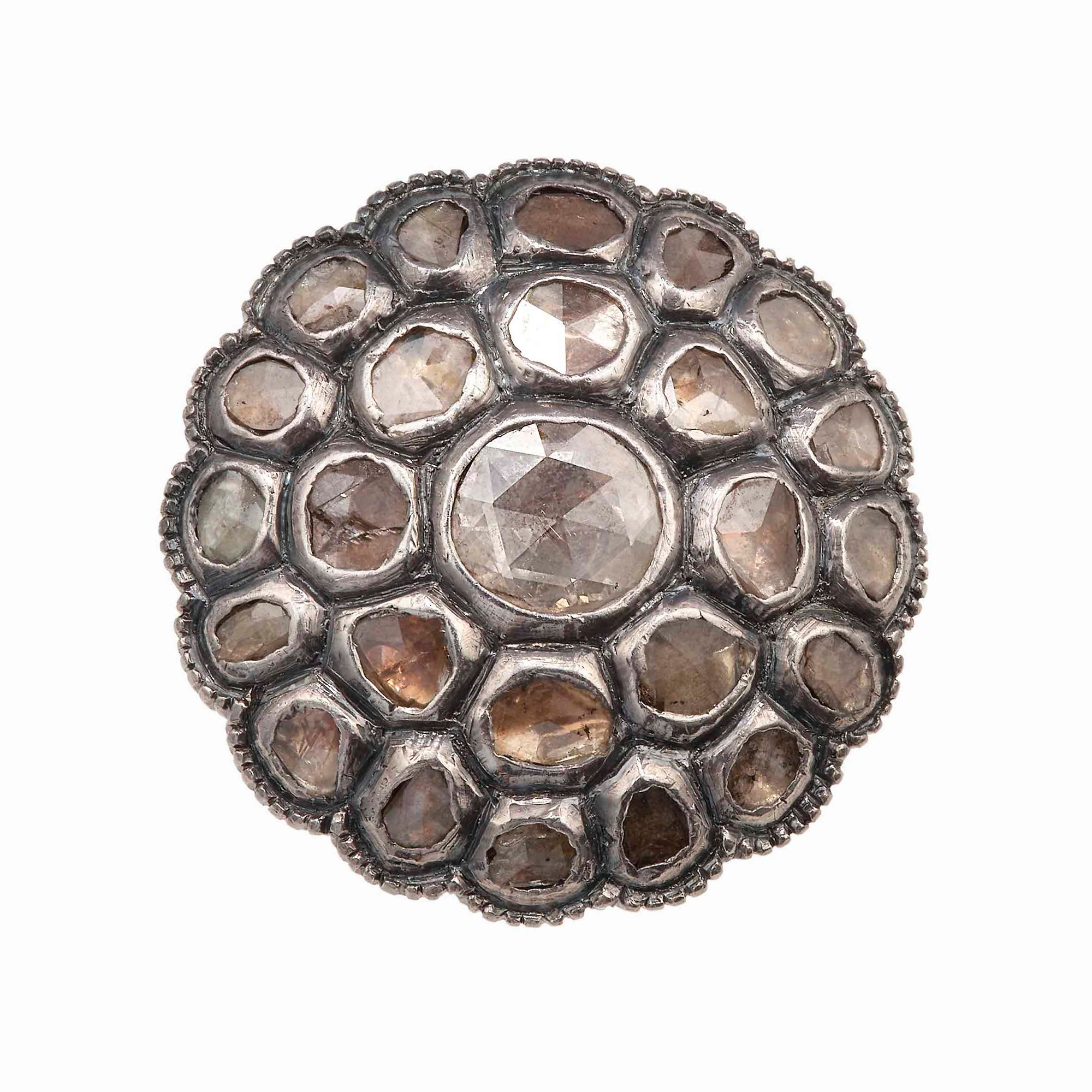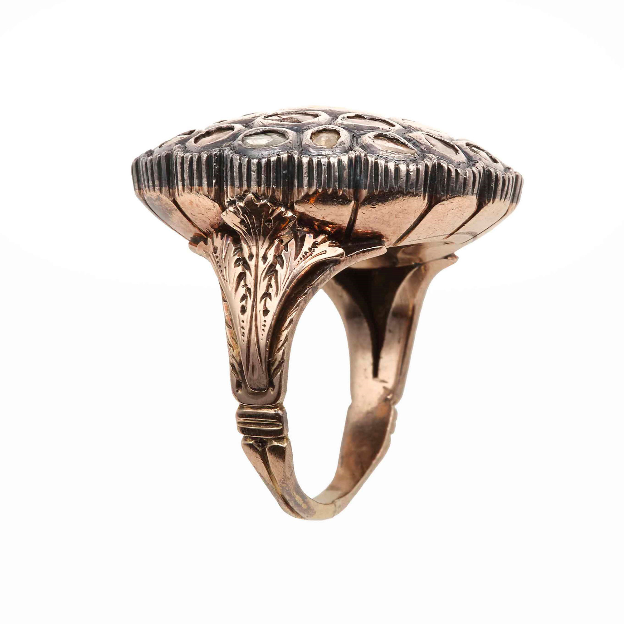 Anello con diamanti taglio rosa d'Olanda, montatura in oro a basso titolo ed argento, 9Kt, gr 13, misura italiana 14