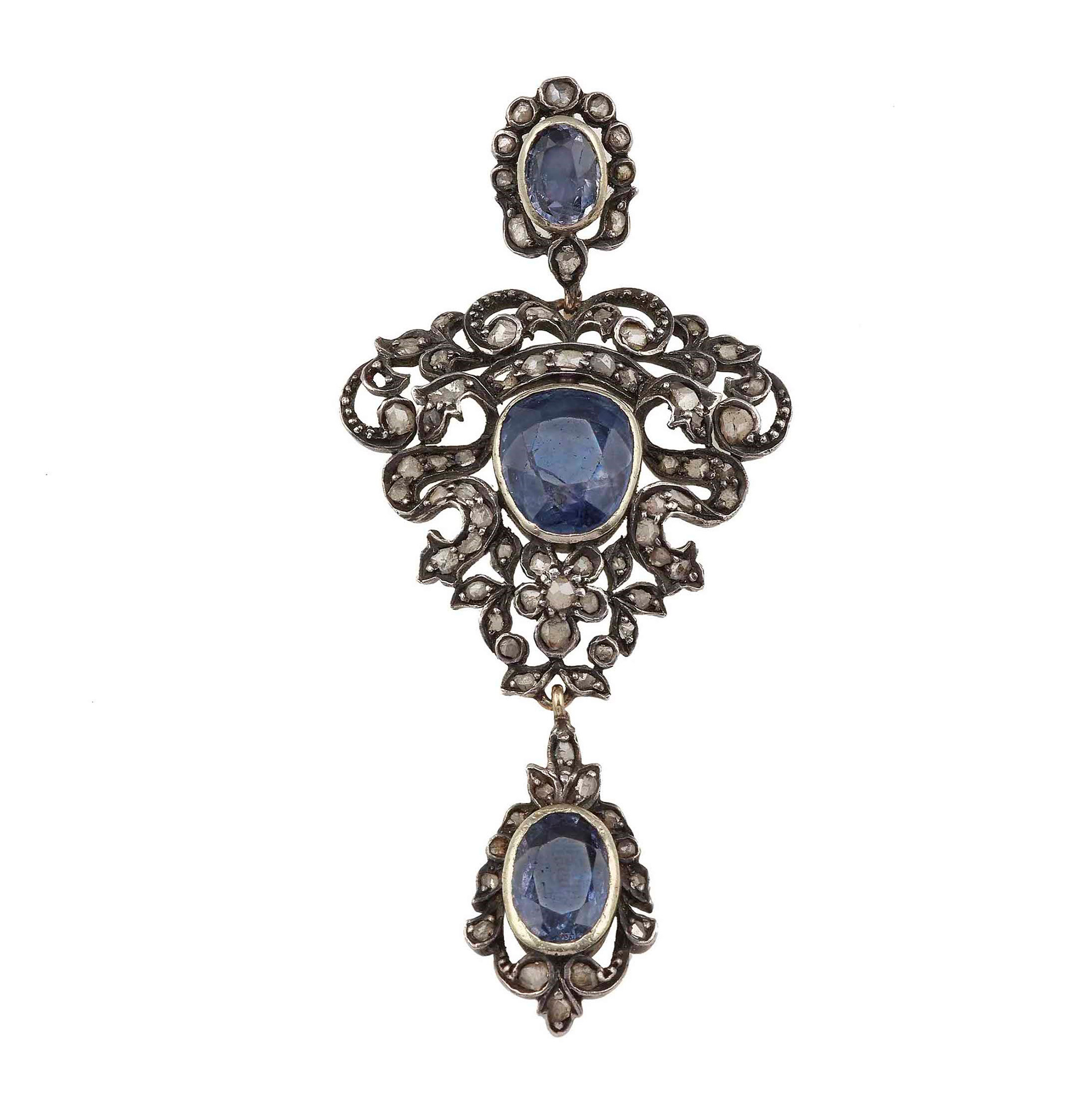 Lotto 545 | Pendente con tre zaffiri Sri Lanka e rose di diamante