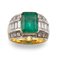 Anello con smeraldo Colombia di ct 6.66 circa e diamanti a contorno, montatura in oro giallo ed oro bianco 750/1000, olio e resina all'interno dello smeraldo, gr. 18,8, misura italiana 19.5