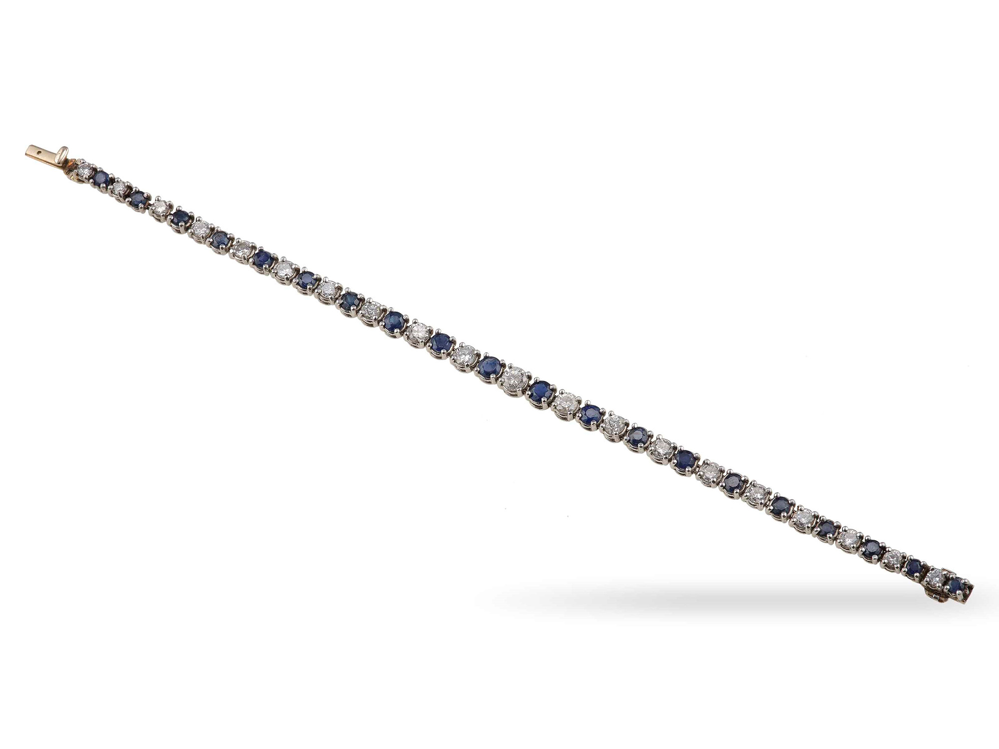 Lotto 592 | Bracciale tennis con diamanti per ct 3.50 circa e zaffiri per ct 4.00 circa