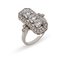 Anello con diamanti taglio brillante, montatura in oro bianco 750/1000, gr 6.6, misura italiana 13, diamanti centrali ct 0.40 circa cad VS/SI