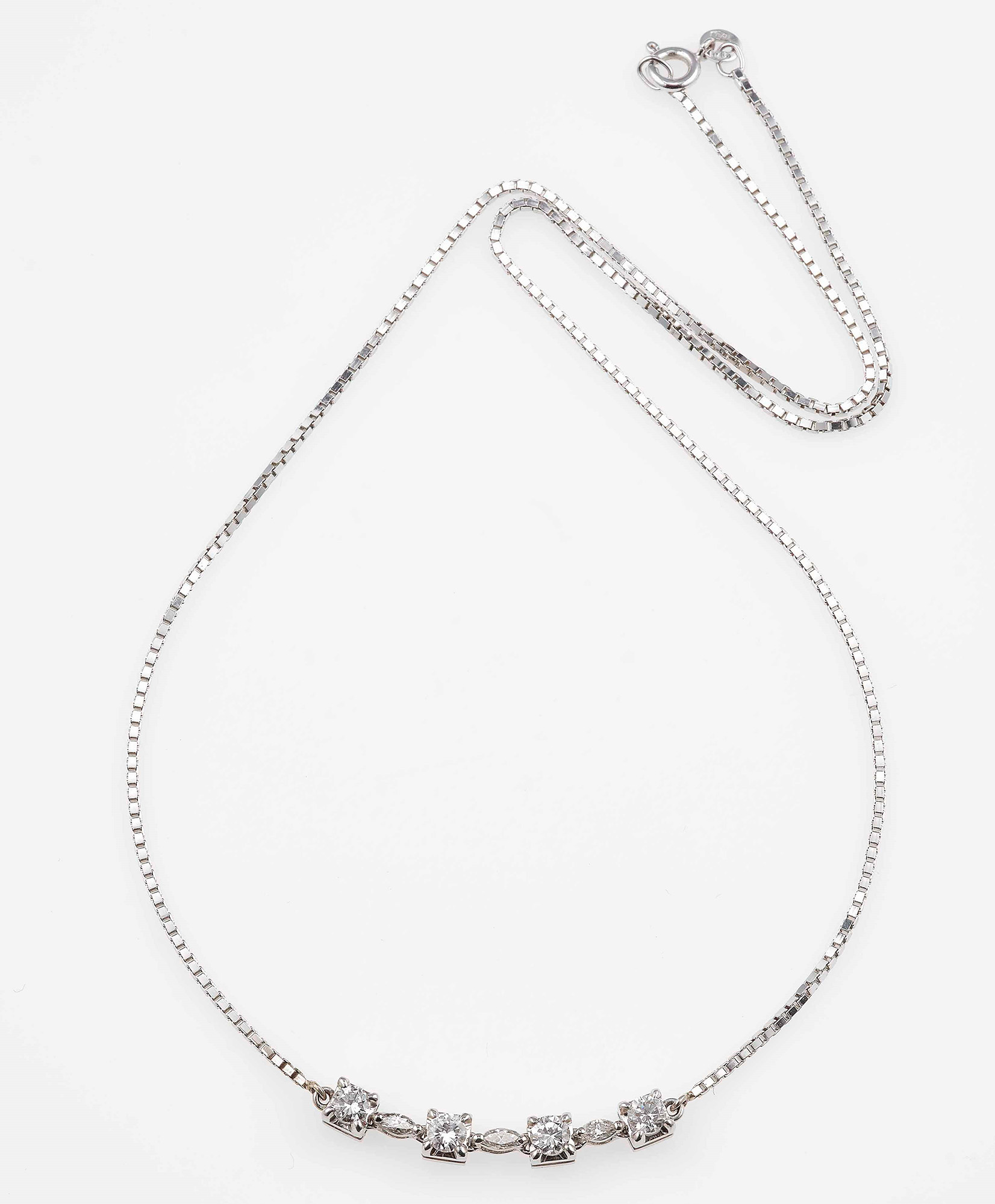 Girocollo con diamanti taglio brillante e taglio navette per ct 1.20 circa, montatura in oro bianco 750/1000, gr 9.4, cm 48
