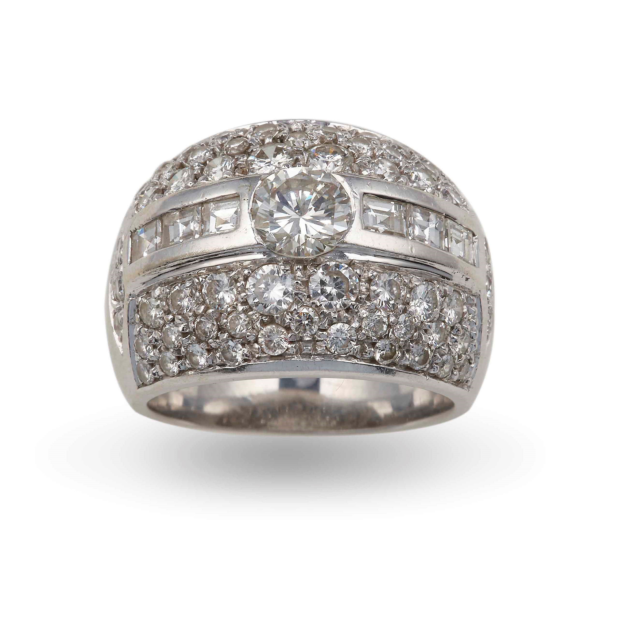 Anello con diamanti taglio brillante e princess, montatura in oro bianco 750/1000, gr 10.00, misura italiana 10